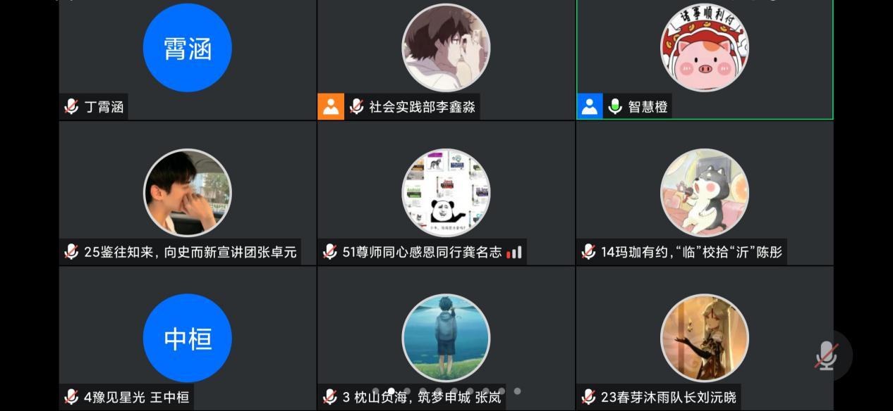 会议伊始,赵海慧老师指出本次社会实践应当遵循就近就便、避免聚集的原则。外出实践要尽量减小活动半径,坚决不开展跨地市实践,不到中高风险地区开展实践,严禁组织大规模、大范围人员聚集活动,同时,对实践期间各团队的安全打卡工作做出详细安排。随后,赵海慧老师指出,各团队应注重探索“互联网+社会实践”的新模式,推动线下线上融合联动。此外,赵海慧老师对交通安全、食品安全等问题进行强调,李鑫淼同学进行了相应的补充。