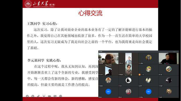 18级各班级以分享实习经验为主题,邀请同学们介绍自己的实习经历与心得体会。受邀分享的同学们就求职简历、面试技巧等各个方面进行介绍,对就业的相关政策和大学生就业的权益与保障方面进行了讲解,鼓励大家在开学后关注各大企业的招聘政策,找到适合自己的岗位,在假期中充实自己,提前做好准备。