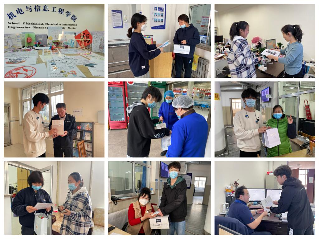 威海疫情以来,校园里一线工作人员坚守岗位,他们舍小家为大家,无私奉献、倾情服务,给予了同学们全天候的温暖与守护。为了向奋战在防疫一线的校园守护者们致敬,4月2日至4月5日,机电与信息工程学院开展“心灵手巧,与爱同行”手工作品展活动。