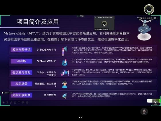 本次决赛答辩共分为创意展示和回答评委提问两个环节。在创意展示环节,各队伍根据创意软件的功能特色,分别从项目简介、背景介绍、痛点分析、软件功能、商业价值、未来展望等方面对团队创意软件进行详细阐述。其中,一号团队和八号团队着眼于个人衣橱,实现AI时尚穿搭。三号团队侧重于反校园霸凌软件,软件定位于对校园霸凌进行知识普及,同时提供后期报警、心理疏导等功能。四号团队侧重于提升用户社交表达能力,开发“侃谈”社交学习类软件。五号、十一号、十三号团队着眼于文化传承领域,通过交叉领域创新融合AR技术,从竞赛、娱乐、游戏三方面传承与发展传统文化。九号、十五号团队着眼于教育艺术领域,致力于打造基于AI、AR的音乐学习系统,全方位为用户提供个性化训练,提高用户的音乐能力。十二号团队打造“影瞳”摄影数据监测软件,通过预测天气信息,摄影预测社区,影瞳社区,社区互动模块等功能,为摄影爱好者提供专业数据,做摄影爱好者的瞳孔。十四号“环环相扣”团队着眼于智能校园领域,打造多应用场景——元宇宙校园应用软件,助力数字校园建设。