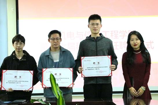 会上,李倩宣读了机电与信息工程学院第十六届科研班主任名单,三位新生辅导员为八位科研班主任发放了聘任证书。第十五届科研班主任代表周梓博从自身经验出发,强调科研班主任远不止科研指导,更要成为新生规划好本科生活的帮手,帮助迷茫的同学找到属于自己的方向。王君豪作为第十六届科研班主任组长提出应大力践行“五位一体”的科研班主任工作模式,将学业学习、学生工作、科研竞赛、社会实践、政策解读等融为一体,并表达了发挥自身作用助力学院科创发展的决心。2022级新生代表唐可表达了对科研班主任的期待和感谢,并代表科研委员发表了做好本职工作助力学院科研事业的决心。