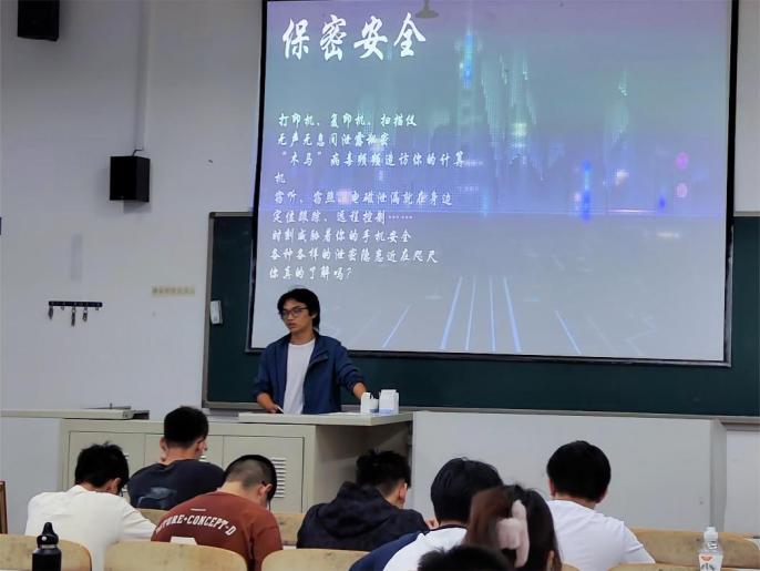 班会伊始,徐希童同学以“保密教育”为主题,通过播放教育视频片段,向大家展示了日常生活中可能导致信息泄露的场景和风险,让大家认识到,从碎纸机等办公用具到计算机等智能设备,都存在泄露信息的隐患。随后,他结合软件工程的专业背景,强调了同学们要从自身做起,努力学习专业知识,遵守专业规范和道德,同时培养专业责任和担当,遵守相关的法律法规和职业道德规范,对自己的行为和结果负责,对社会和公众负责。