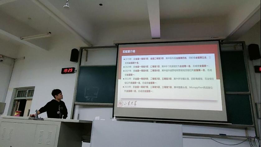 徐志超从自身的竞赛经历出发,从交涉技巧需求、个人科研能力要求、全局意识与竞赛准备关系三方面,多角度、全方面地介绍了大学生竞赛科研等事项,为同学们答疑解惑。他以自己参加智能车竞赛的经历为例,提议新生应当积极进行自我锻炼成长,鼓励新生主动参加竞赛小组,敢于尝试,乐于实践,勇敢踏出第一步。