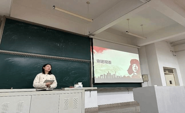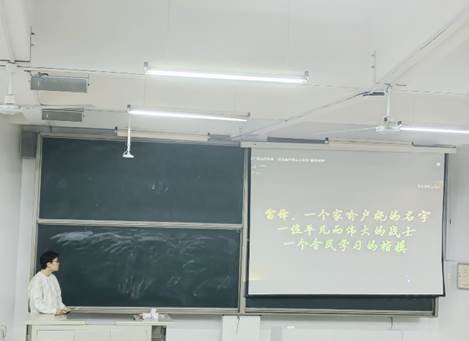 随后,李子龙同学在教育引导、社会倡导、自我实践三个部分介绍了如何传承并且弘扬雷锋精神。尤其强调在自我实践方面,同学们应当积极参与志愿活动,将“雷锋精神”这一火炬传递下去。