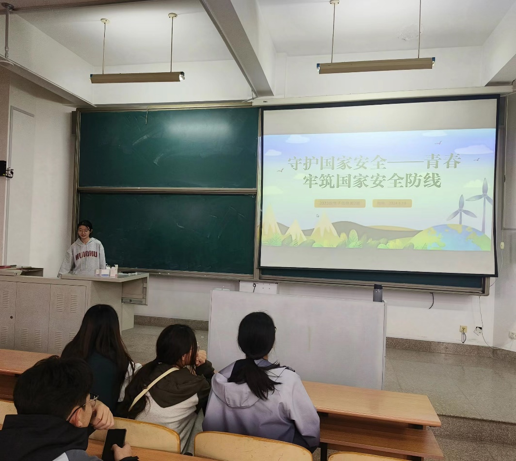 为了增强同学们对国家安全的认识,提升国家安全意识。4月18日下午,23级电子类02班在商学院547教室开展了“青春筑牢国家安全防线”主题团日活动。本次活动由团支书李靖如主持,23级电子类02班全体同学参加。