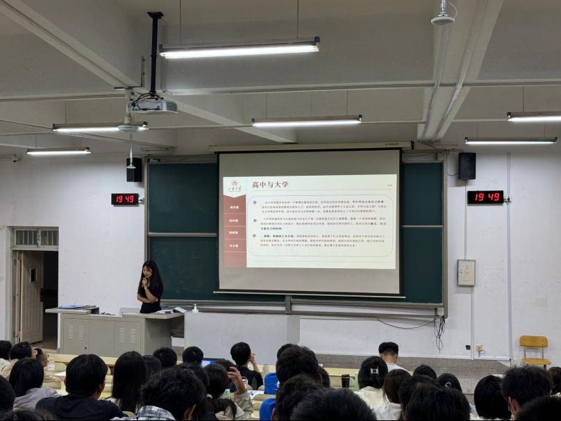 张晓敏结合一年级新生常见问题及学生第一周学习生活反馈,从相识、适应、规则、安全四方面进行答疑解惑。在相识篇,张晓敏再次进行自我介绍,期望同学、师生均能形成彼此信任的良好关系,共同建设团结集体。在适应篇,张晓敏通过对比高中与大学生活的不同之处,对学生该如何适应大学生活进行指导;并针对新生常见心理问题、解决方法、人生价值取向等多个方面,引导同学们认识到心理健康的重要性,掌握适应新环境、调节心理状态的方法。在规则篇,张晓敏全面系统地讲解校规校纪,包括日常考勤、宿舍纪律和个人生活等方面的管理要求和流程,强调学生要尊重并遵守规则。在安全篇,张晓敏结合事实案例,从防诈骗、反邪教、网络安全、交通安全以及日常安全等方面为学生敲响警钟。会议最后,张晓敏结合学生平时咨询较多的问题进行统一解答。