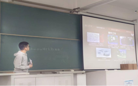 接着,班级科研小能手冯满飞同学以及拥有丰富竞赛经历的陈昊然同学为班级同学分享了经验以及相关的科研介绍。其中,冯满飞同学以其亲身参与的智能车竞赛为例,讲述了参赛的全过程,不仅让大家对科研竞赛有了直观的认识,更激发了同学们对科技创新实践的浓厚兴趣。陈昊然同学从自身出发,为大家详细剖析了相关学科竞赛的类别、特点以及参赛的价值,更以其亲身经历鼓励大家勇敢迈出第一步,积极投身于科研竞赛的浪潮中,在实践中不断磨砺自我,提升个人综合素质。