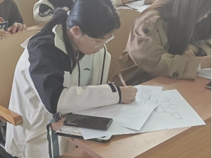 心理委员董洋博作为班会主持人,向大家介绍了人际沟通的小技巧,带领大家开展“你说我画”,“我的人际财富”,“非暴力沟通解冲突反思”等小活动。在“你说我猜”环节,有4位同学分别参加游戏,一位同学描述图片上的组合图形,另一位同学通过描述,在黑板上画出相应的图案,两组同学配合默契,都能画出接近样例的图案。这个游戏让同学们意识到了人际沟通的重要意义。