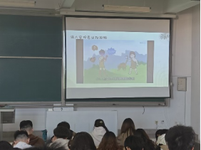 其次,董洋博放映有关“合理表达自己需求的重要性”视频,使同学们对其有了更详细的了解,两位同学也举手表达了自己看完视频的收获。
