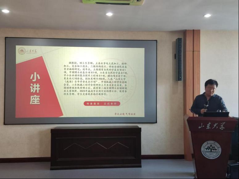 紧接着,在“创新实践之明元气”环节中,冉浩民基于爱国、创新、求实、奉献、协同、育人等六大创新导向进行深入浅出地讲解,深度激发了同学们的爱国热情和创新志向,为同学们的全面发展和未来创新实践奠定了坚实的基础。相信,这六大精神将成为同学们成长道路上的指南,引领同学们成为具有社会责任感和创新能力的新时代青年。随后,王侃为同学们分享了科研经验。他强调,在快速变化的时代中,创新是推动社会进步和科技发展的关键动力,他鼓励同学们要敢于挑战传统思维,培养批判性思维和解决问题的能力,不断探索未知领域。