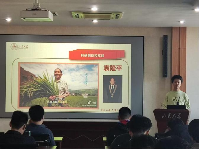 会议伊始,冉浩民带领同学们共同学习习近平总书记在全国科技大会上的重要讲话精神,号召同学们积极响应国家创新驱动发展战略,投身科技创新实践。同时开展知识竞答环节来进一步加深同学们的理解,题目涵盖了创新理论、科技发展史、著名科学家及其贡献、现代科技前沿等相关领域,极大激发了同学们的创作热情。在“创新实践之立标兵”环节中,冉浩民通过文字与视频相结合的方式,向同学们分享了几位创新实践的典型人物,深刻激励同学们投身创新实践,增强了文化自信与历史责任感,引导他们积极成为时代奋进的推动者,为国家的持续发展贡献青年力量。在“创新实践之明元气”环节中,冉浩民围绕爱国、创新、求实、奉献、协同、育人六大创新导向进行了深入浅出的讲解,深刻激发了同学们的爱国情怀和创新热情。