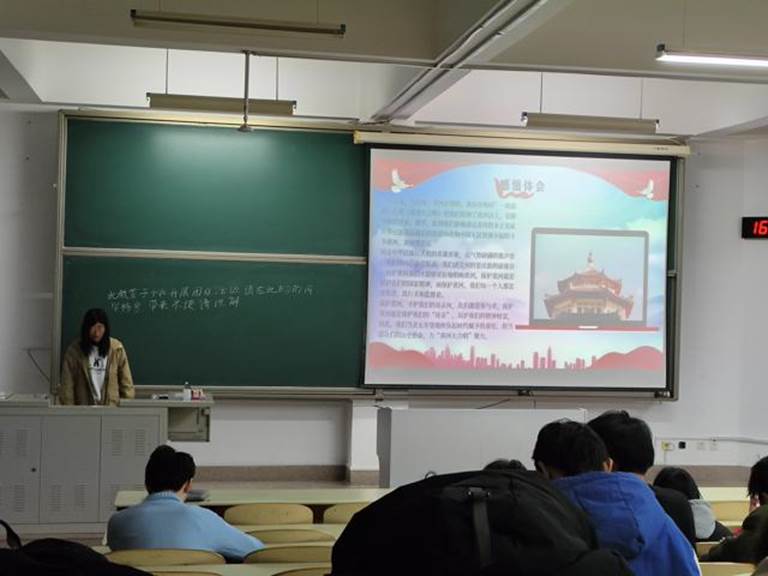 活动最后,庞博冉对本次的主题团日进行总结,并发表了感悟体会。她指出:“在气势磅礴的〈黄河大合唱〉里,我们感受的是民族的最强音,保护好黄河我们才能更好地唱响黄河,保护黄河就是保护我们的国家精神,而保护黄河,我们每个人都是宣传者、践行者。”