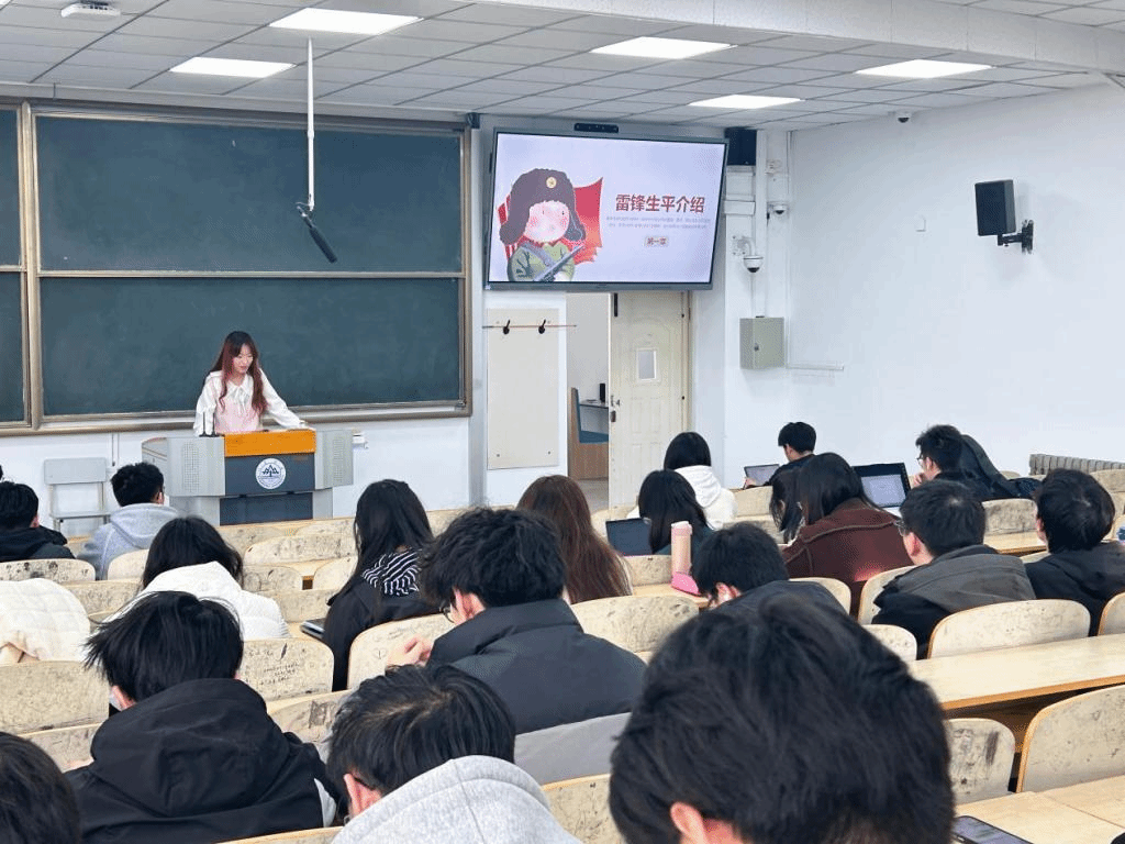 活动伊始,团支书杨欣颐发表演讲,带领同学们走进学习雷锋精神,如何践行雷锋精神。