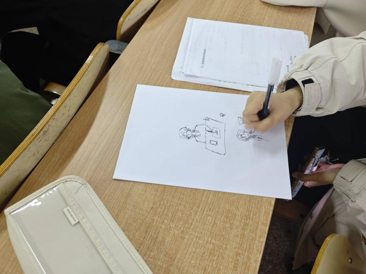 班会伊始,大家一起进行了“学习自画像”小活动。同学们根据自己的实际情况,在纸上画出了自己真实学习的样子。大家的画作各不相同,有人描绘台灯下疲惫的身影,也有人画自己学习过程中被手机分心的场景。小组讨论环节中,大家纷纷分享了自己的画并交流了自己的感受。通过这一活动,大家对自己近期的学习状态有了更清晰的了解与把握,对自己学习中存在的问题也有了更明确的认知。
