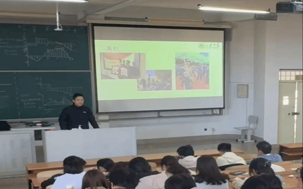 紧接着,曾担任智能制造1、2班军训教官的申佳硕学长亲临现场,为同学们分享了自己在军旅生涯中有关国家安全、反恐及反间谍的真实故事。学长生动的讲述让大家认识到“国家安全无小事,国家安全就在我们身边”。通过这段生动的经历,同学们进一步强化了维护国家安全的重要性。