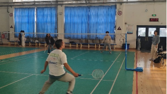 乒乓球小组的同学们学习了基本的推挡、发球动作。同学们还进行了实战练习和友谊赛,部分技术较为熟练的同学主动指导同伴,纠正动作问题。