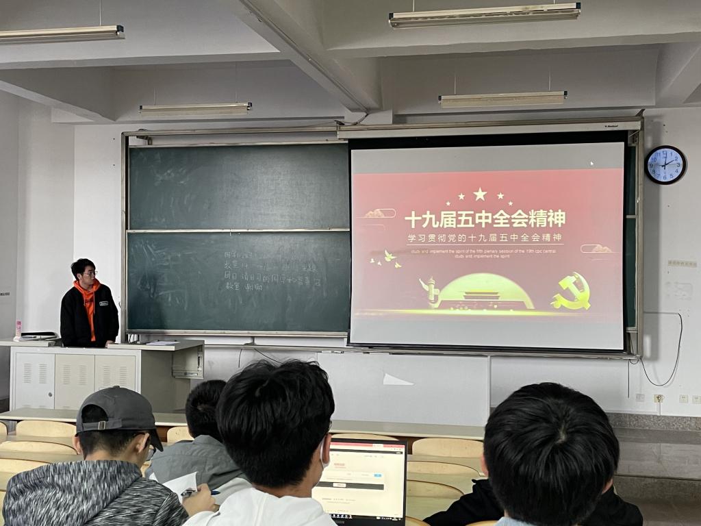 4月11日中午,20级计算机2班在商学院453教室举办了“学习十九届五中全会精神”主题团日,本次活动由团支书林志鑫主持,计算机2班全体同学参加。