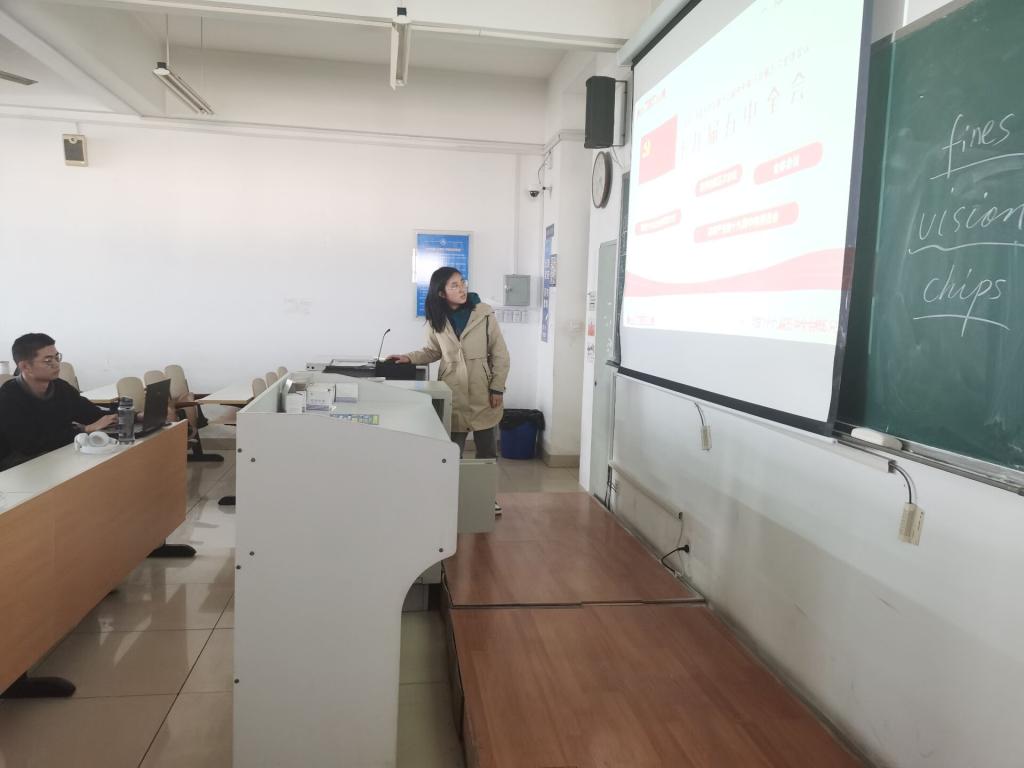 活动开始,团支书为同学们介绍了党的代表大会的历史,简述了党的代表大会的会议流程,并详细介绍了十五届五中全会的一个重要议题,即“十四五规划”。让同学们全面地了解党的十五届全会。通过对十九届五中全会及会上审议的《中共中央关于制定国民经济和社会发展第十四个五年规划和二〇三五远景目标的建议》的学习,同学们了解了中全会在世界大变局下书写的“中国故事”,认识到国际视野里的“东方能量”。随后,团支书呼吁同学们做“新时代合格青年”。她建议同学们切实加强个人修养,保持谦虚、谨慎、不骄不躁的工作作风,勇于担当、大胆创新,并坚定以习近平新时代中国特色社会主义思想为指导。其建议为同学们指明了进步方向,有利于“培养担当民族复兴大任的时代新人”工作的进行。