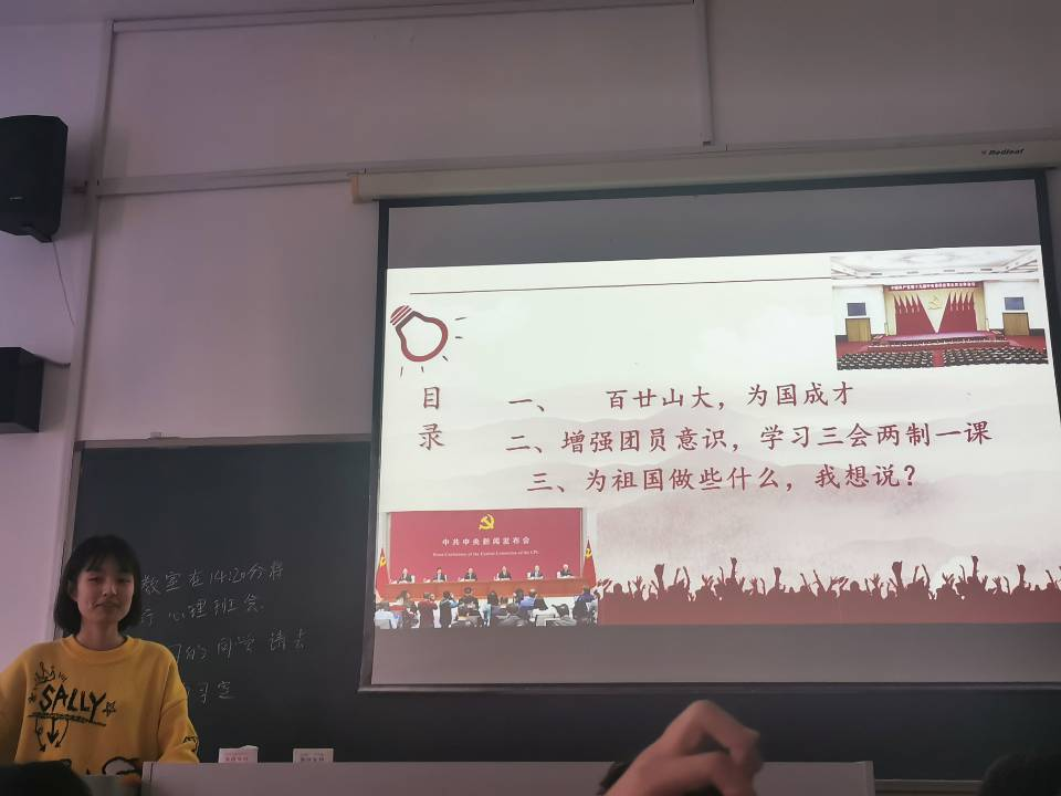10月26日下午第三大节,19级电子信息工程1班团支部在商院448举办“请党放心,强国有我”主题团日活动。本次活动由团支书杨靖怡主持,辅导员邹汶洋、19级电子信息工程1班团支部同学参加。