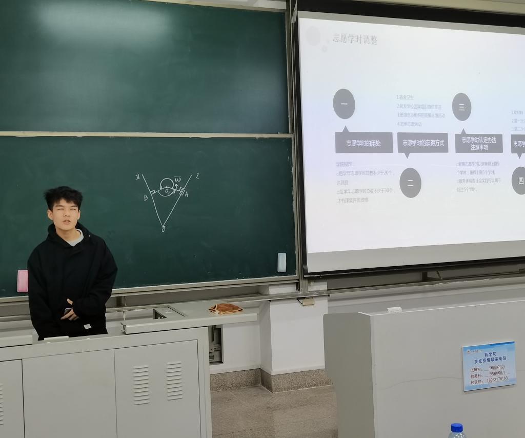 班会伊始,机械二班班长王帅杰对大一学年工作做出总结,认真分析了班级学期学年成绩、班级奖学金获奖人数及占比和班级挂科人数及占比,邀请在学生组织、党建服务中心、学生会和团委留任的同学分享资源。随后,王帅杰同学邀请班级第一袁昱宗同学和班级第二李兴发同学分享学习经验,两位同学在各自的学习方法和学习资源上做出了详细的讲解和分享。在同学们一阵掌声过后,机械二班宣传委员曹峻腾对新学年的志愿学时调整进行详细讲解并对以后的志愿学时截图收取做出重新安排规划,随后,王帅杰同学又对请假流程和班级信息通知渠道进行了强调说明。最后王帅杰同学对体测、主题团日活动和班级团建等活动做出了详细安排。。