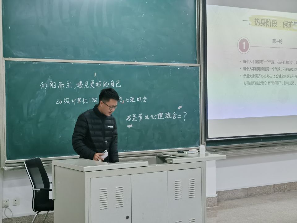 10月31日晚,20级计算机1班在商学院447教室举办“向阳而生,遇见更好的自己”人际沟通主题心理班会。班主任刘猛出席并参加活动。本次心理班会由心理委员张令昊同学、高嘉琳同学共同主持。