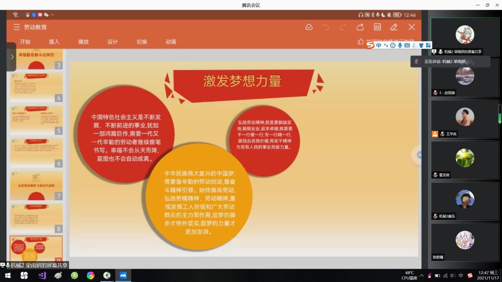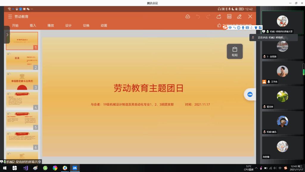 11月17日下午,19级机械设计制造及其自动化专业03班举办劳动教育主题团日,本次会议由团支书王学良主持,19级机械设计制造及其自动化03班全体成员参加。