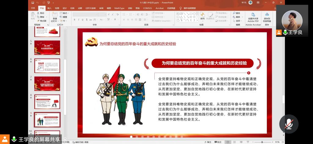 为深入学习贯彻习近平新时代中国特色社会主义思想和党的十九大精神、认真学习领会习近平总书记“七一”重要讲话精神和给《文史哲》编辑部全体编辑人员重要回信精神,激发团员青年爱党爱国热情,帮助团员青年认知红色文化,挖掘新时代红色文化教育的内涵与价值。11月17日中午,2019级机械设计制造及其自动化02班开展了以“传承红色基因·践行初心使命”为主题的线上主题团日活动。本次主题团日由团支书梁雨妍主持,2019级机械设计制造及其自动化02班全体同学参与。