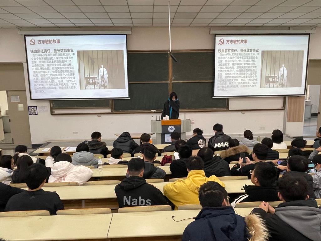 活动伊始,程诺以方志敏铁血肩扛责任、誓死效忠事业和其一生清贫、绝不徇私的事迹为背景,讲述了什么是红色基因,加深了同学们对红色基因的了解。随后,程诺阐述了青年在当代应怎样践行使命,围绕高校培养、青年个人成长等方面进行了说明,更是让同学们认识到自身责任的重大与传承的重要性。最后,结合主题展开知识竞赛,同学们积极参与其中,积极回答问题。