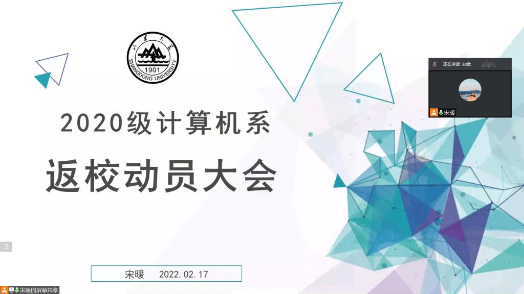 为进一步回答同学们返校过程中遇到的各种问题并提高同学们返校途中的安全意识,2月17日晚19时许,2020级计算机系在线上开展了计算机返校动员大会,会议由辅导员宋暖主持。