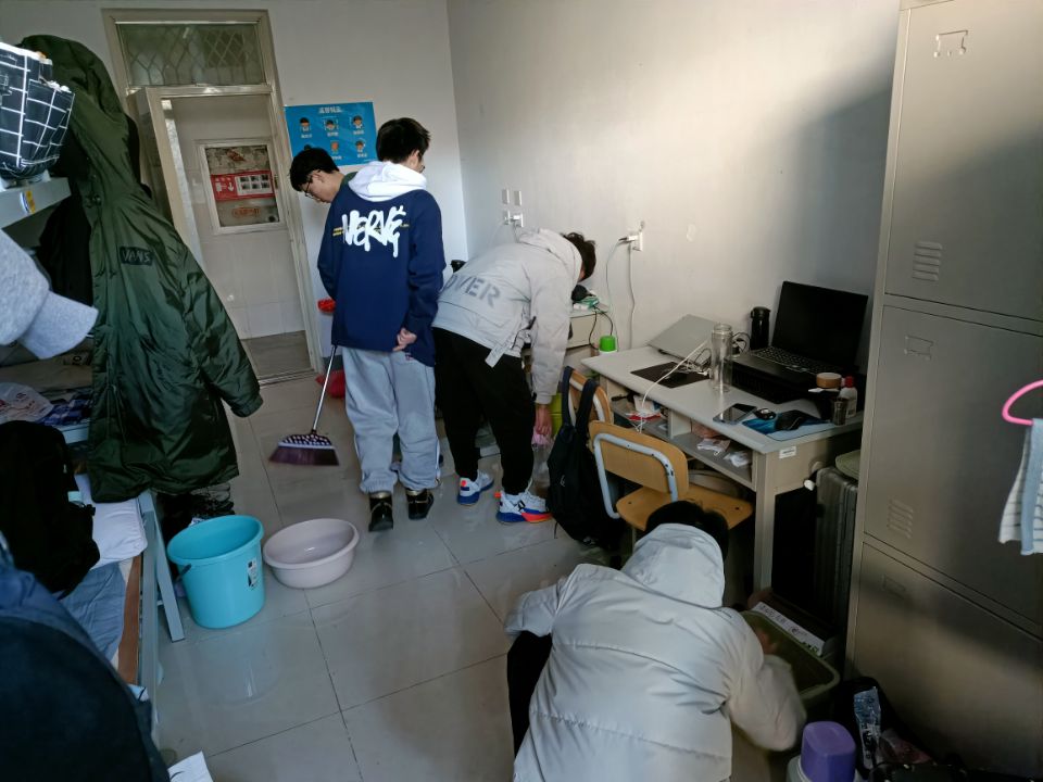 下午四点整,团支书张欣宇号召班级同学对寝室进行大扫除。同学们纷纷拿出寝室的清洁工具,在寝室内分配打扫任务,按照相关要求,清扫地面、清理书桌、整理内务,自查杂物堆放、乱拉电线等安全隐患,全面落实宿舍内务卫生、安全各项举措。在对寝室内部打扫完毕后,同学们还清扫了寝室走廊,并且对寝室进行开窗通风。在男寝由班长张明宇检查寝室卫生打扫情况,女寝由团支书张欣宇检查寝室卫生打扫情况。身体力行,参与一次劳动体验,用劳动生活记录点滴是本次活动的目的所在。此次活动,班级同学全员积极参加,各个寝室都打扫收拾的十分整洁、干净。