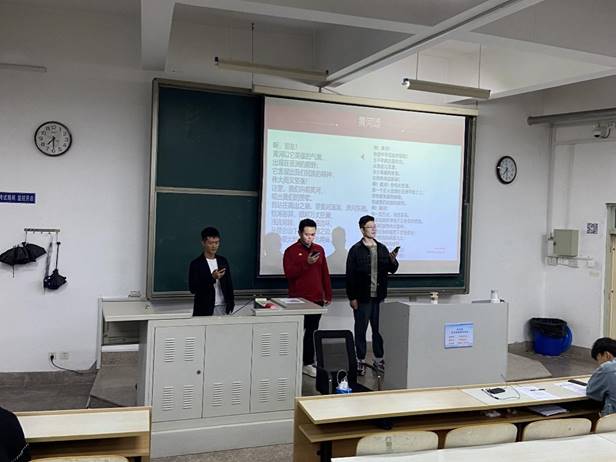 乘百舸争流之势,续中华民族之源,何其有幸,生于华夏,见证百年,愿山河无恙,祖国繁荣昌盛,人民岁岁平安。精彩的演讲过后,徐正豪,马俊杰,张浩旸三位同学用激昂的声音传递出对黄河和祖国的热爱,须知少年凌云志,曾许人间第一流,他们用一首《黄河颂》献礼泱泱华夏。