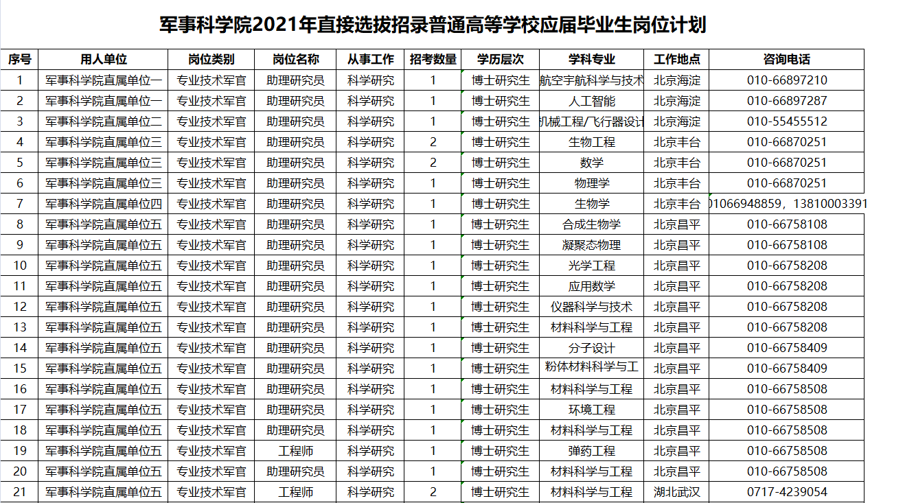 军事科学院2021年直接选拔招录普通高等学校应届毕业生工作最终解释权归军事科学院政治工作部。