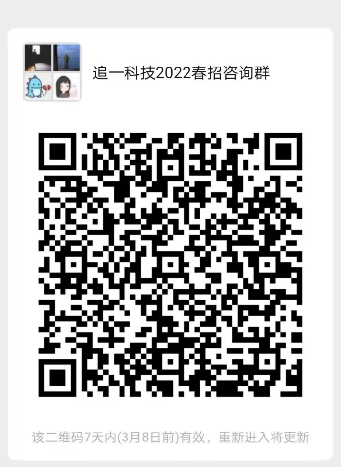 【联系我们】扫描下方微信二维码进入我司校招交流群,如遇二维码失效,可添加微信小助手 XYDSxzs 备注追一科技入群