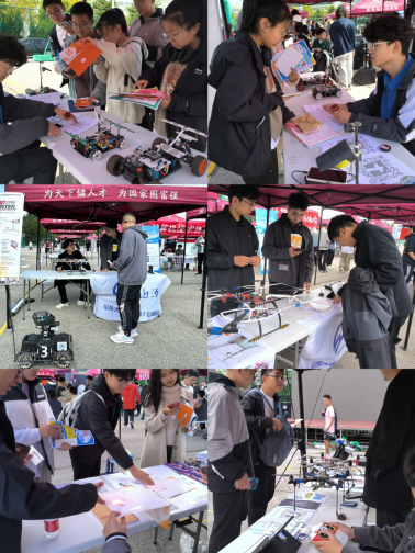 社团纳新活动现场氛围热烈,热情高涨,各社团科技成果展示吸引大批同学驻足参观,社团负责人们耐心地向同学们介绍社团特色,让同学们更全面地了解社团,找到兴趣共鸣。纳新现场,机器人与电子设计协会通过展示智能车模型和交互式智能车识途场景,为同学们提供了直观的智能车入门体验,激发同学们对科技创新的实践热情和探索兴趣;节能减排协会通过展示会员在各类竞赛中成功的项目经历,分享创新实践经验,激发同学们创新动能;智能创新协会会员实地操作机甲大师遥控车模,邀请感兴趣的同学亲身体验,让同学们切身感受智能控制和机械设计的魅力;计算机技术协会耐心解答了同学们的咨询,组织计算机知识问答,为每位新会员送上精心准备的小礼物;电脑爱好者协会展示了社团在游戏设计、虚拟现实、数字艺术等方面的设计成果,吸引更多有创意、有热情的新会员加入其中。