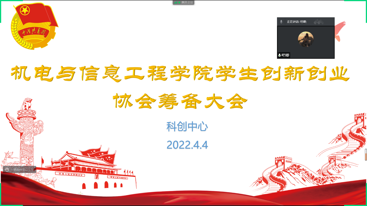 4月4日,机电与信息工程学院团委科创中心第七次部门例会暨机电与信息工程学院学生创新创业协会筹备大会在线上顺利开展。