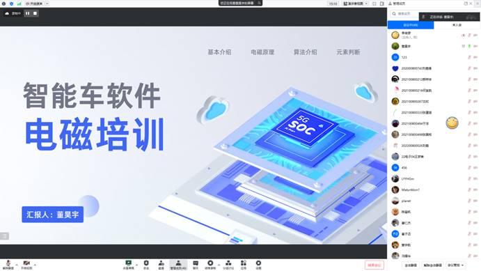 1月28日,机器人与电子设计协会智能车竞赛软件培训以线上形式成功举办。本次培训邀请20级计算机科学与技术专业董昊宇同学主讲,以电磁赛道检测与元素识别为重点进行了培训。