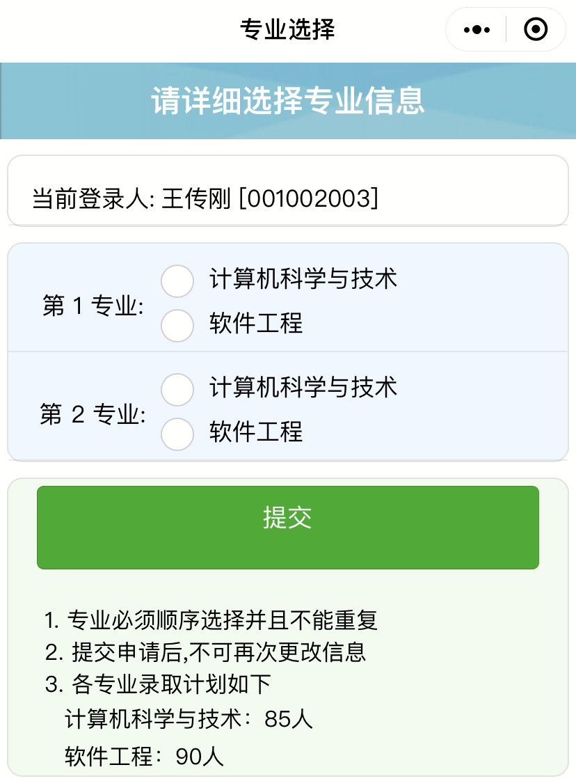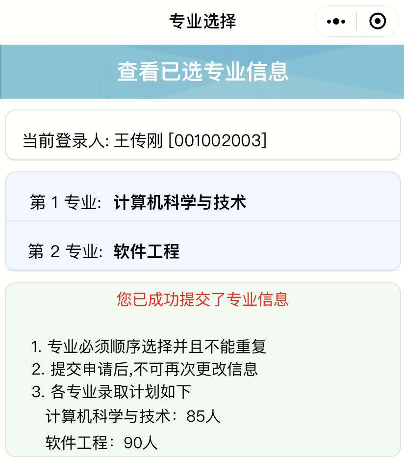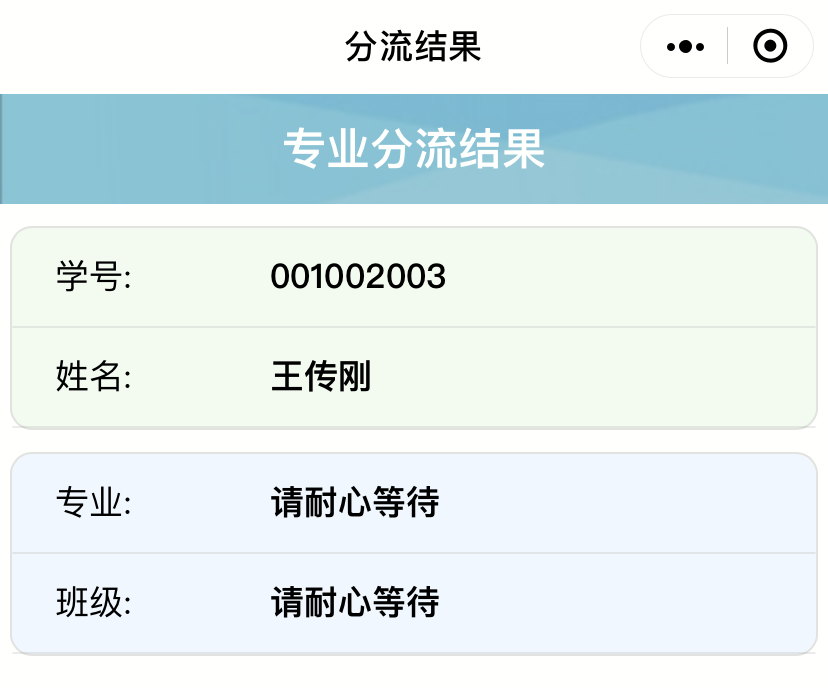 5. 学生可以在分流结束后,通过微信小程序查看分流结果。