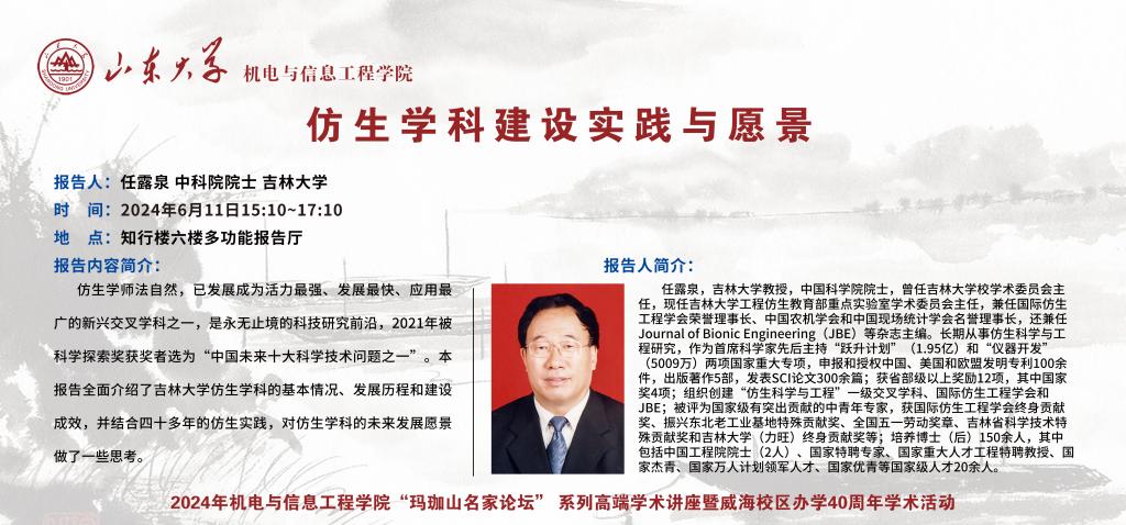 学术报告丨 仿生学科建设实践与愿景 吉林大学 任露泉 中科院院士