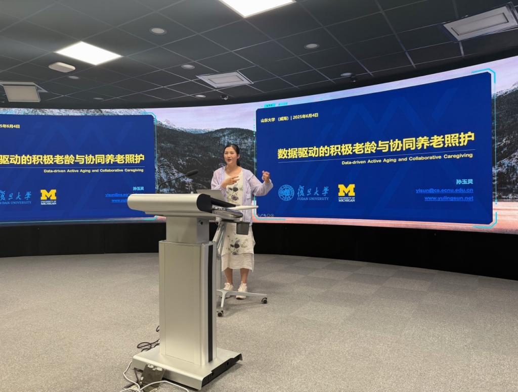 6月4日下午,机电与信息工程学院举办“玛伽山名家论坛”系列学术讲座,邀请复旦大学青年研究员、密歇根大学客座教授孙玉灵开展“数据驱动的积极老龄与协同养老照护”专题报告。活动由学院副研究员卞玉龙主持,约50名从事人机交互技术研究的师生参加活动。