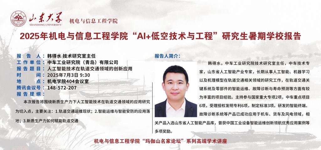 学术预告 | 机信学院“玛伽山名家论坛”:人工智能技术在轨道交通领域的创新应用