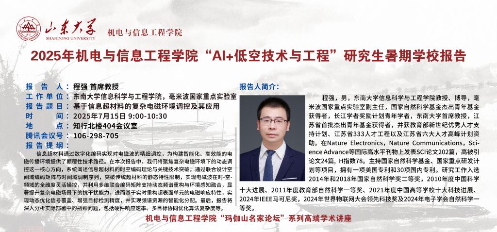 学术预告 | 机信学院“玛伽山名家论坛”:基于信息超材料的复杂电磁环境调控及其应用
