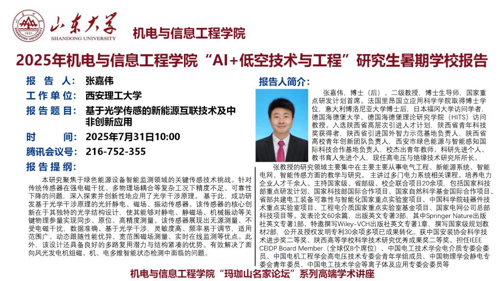 学术预告 | 机信学院“玛珈山名家论坛”:基于光学传感的新能源互联技术及中非创新应用
