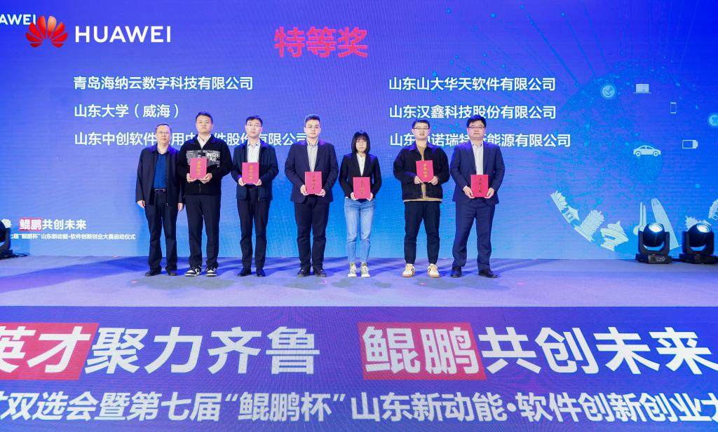 4月13日第六届“鲲鹏杯”山东新动能·软件创新创业大赛颁奖仪式在山东省济南市举行。机电与信息工程学院参赛队伍“盖世汤圆”团队凭借着优异表现获得了学生赛道唯一特等奖,“脑语计划”团队获得二等奖,“时钥”团队获得三等奖。